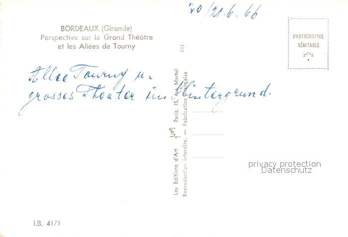 13330388 Bordeaux Perspective sur le Grand Theatre et les Allees de Tourny postalisch nicht gelaufen Erhaltung siehe scans [WerneD78] KatCode: 11170033233063