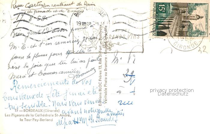 13571204 carte postale Bordeaux Pigeons de la Cathedrale St-Andre Tour Pey-Berland postalisch gelaufen Erhaltung siehe scans [PaolaD17] KatCode: 11170033233063