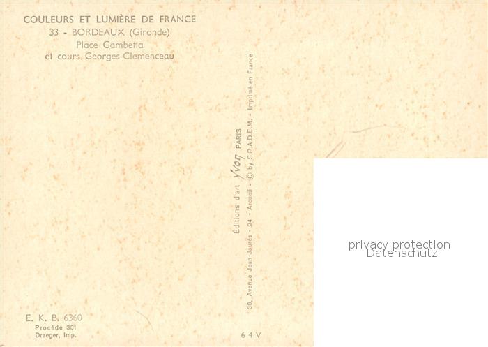 13320639 Bordeaux Place Gambetta Cours Georges-Clemenceau postalisch nicht gelaufen Erhaltung siehe scans [PaolaD17] KatCode: 11170033233063