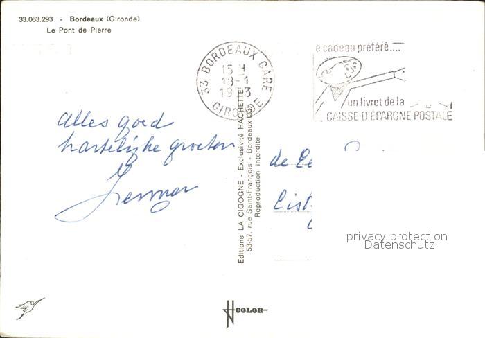 12230003 carte postale Bordeaux Pont de Pierre postalisch gelaufen Erhaltung siehe scans KatCode: 11170033233063