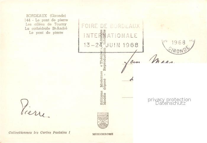 13059221 carte postale Bordeaux Pont de Pierre Allees de Tourny Cathedrale St Andre postalisch gelaufen Erhaltung siehe scans [WerneD78] KatCode: 11170033233063