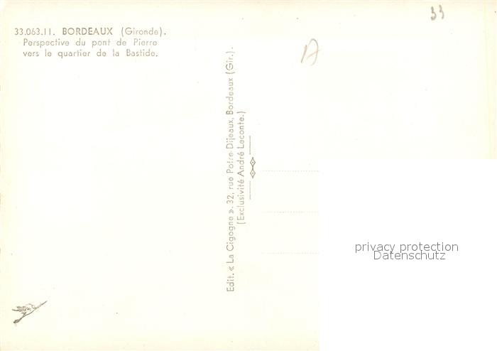 13536156 Bordeaux Pont de Pierre vers le Quartier de la Bastide postalisch nicht gelaufen Erhaltung siehe scans [FriedD77] KatCode: 11170033233063