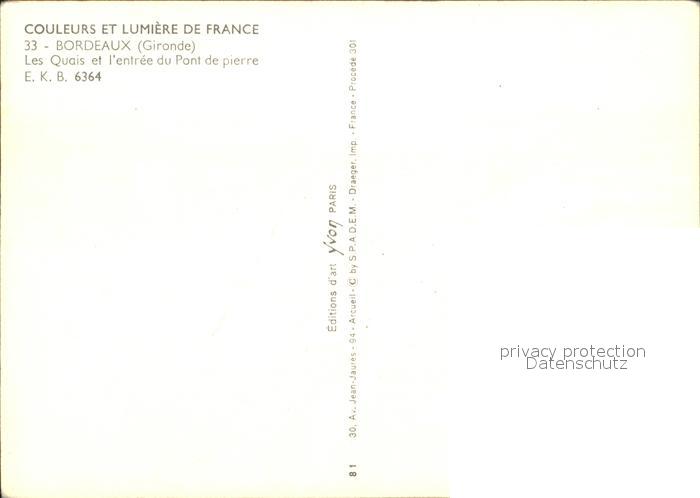 12240410 Bordeaux Quais et Pont de Pierre postalisch nicht gelaufen Erhaltung siehe scans KatCode: 11170033233063