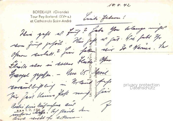 12760304 Bordeaux Tour Pey Berland Cathedrale Saint Andre postalisch nicht gelaufen Erhaltung siehe scans [FriedD77] KatCode: 11170033233063