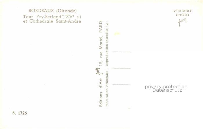 12785679 Bordeaux Tour Pey-Berland et Cathedrale postalisch nicht gelaufen Erhaltung siehe scans [LiesaD40] KatCode: 11170033233063