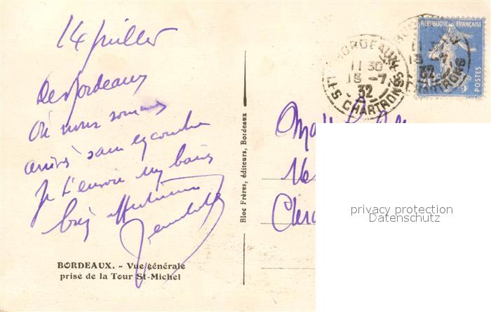 13586075 Bordeaux Vue generale prise de la Tour St Michel postalisch gelaufen Erhaltung siehe scans [WerneD78] carte postale Wern Katcode 11170033233063
