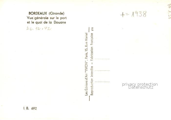 13071901 Bordeaux Vue generale sur le port et Quai de la Douane postalisch nicht gelaufen Erhaltung siehe scans [FriedD77] KatCode: 11170033233063