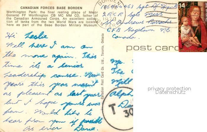 old postcard Borden Ontario Washington Park postalisch gelaufen Erhaltung siehe scans [WerneD78]