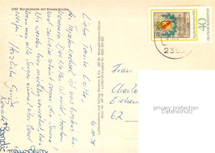 73643245 alte Postkarte Bordesholm Fliegeraufnahme mit Klosterkirche postalisch gelaufen Erhaltung siehe scans [WerneD78] KatCode: 11110001058022