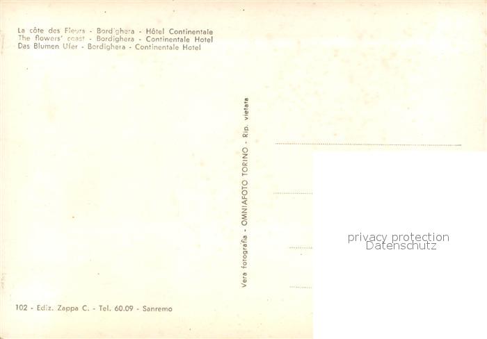 13658064 Bordighera Albergo Continentale postalisch nicht gelaufen Erhaltung siehe scans [WerneD78] Wern Katcode 11240