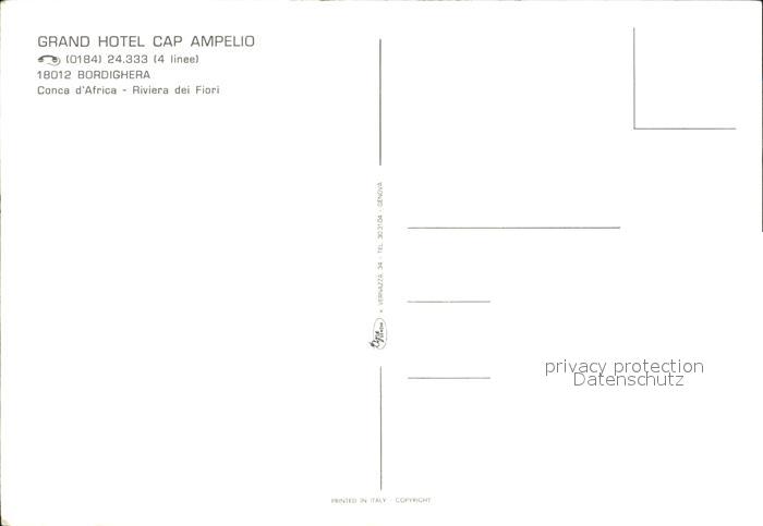 Bordighera Grand Hotel Cap Ampelio postalisch nicht gelaufen Erhaltung siehe scans