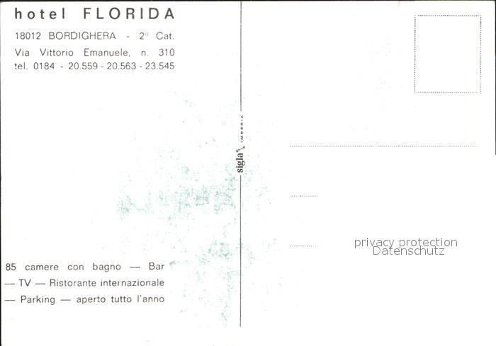 Bordighera Hotel Florida postalisch nicht gelaufen