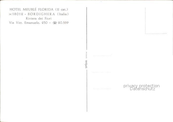 Bordighera Hotel Meuble Florida postalisch nicht gelaufen Erhaltung siehe scans