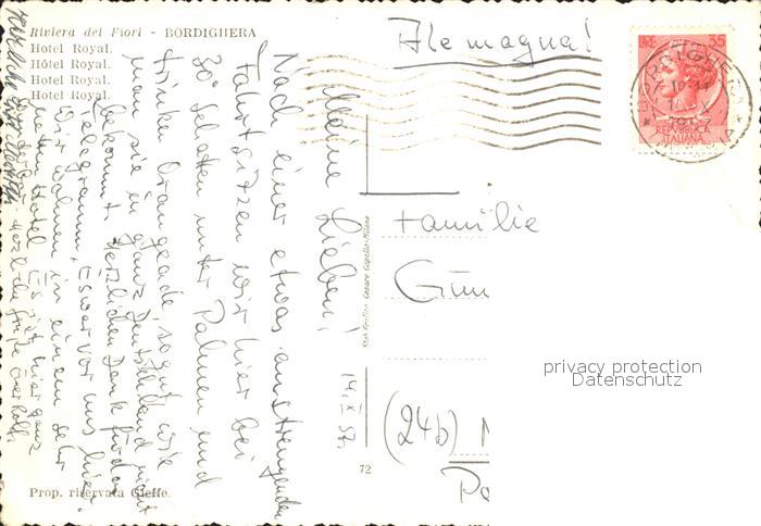 old postcard Bordighera Hotel Royal postalisch gelaufen Erhaltung siehe scans