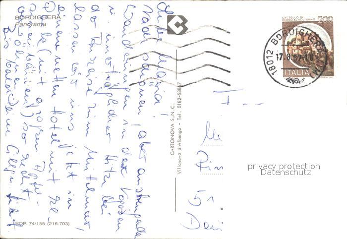 old postcard Bordighera Panorama postalisch gelaufen Erhaltung siehe scans