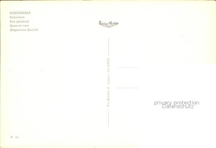 Bordighera Panorama Luftbild postalisch nicht gelaufen Erhaltung siehe scans