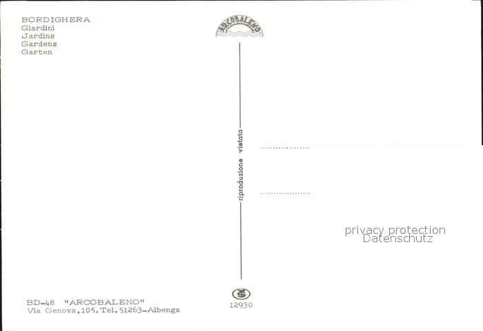 Bordighera Park mit Denkmal Margherita Di Savoni postalisch nicht gelaufen Erhaltung siehe scans