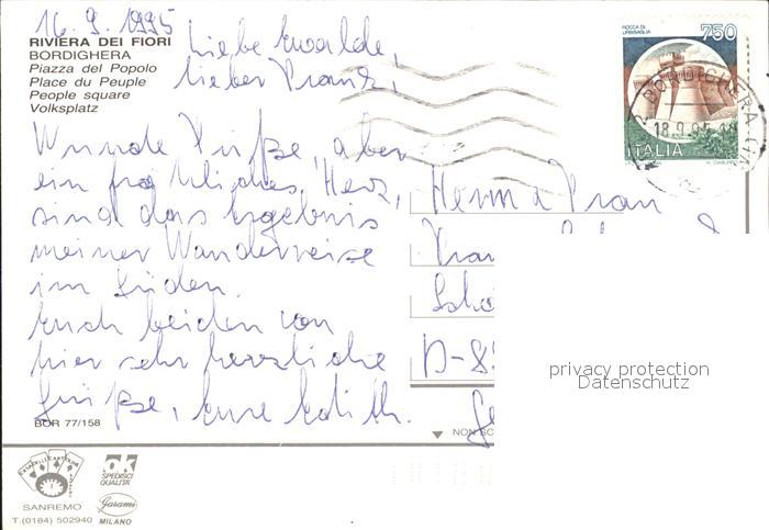 old postcard Bordighera Piazza del Popolo postalisch gelaufen Erhaltung siehe scans