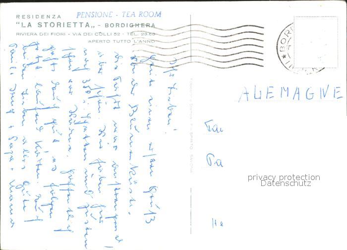 old postcard Bordighera Residenza La Storietta Terrasse postalisch gelaufen Erhaltung siehe scans