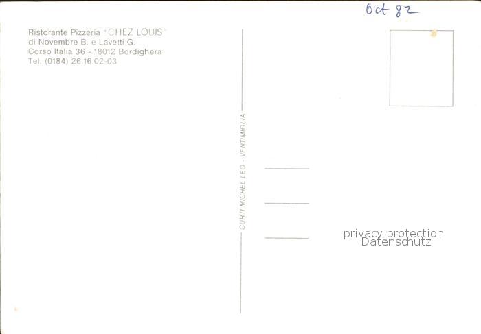 Bordighera Ristorante Pizzeria Chez Louis Gastraeume Strassencafe postalisch nicht gelaufen