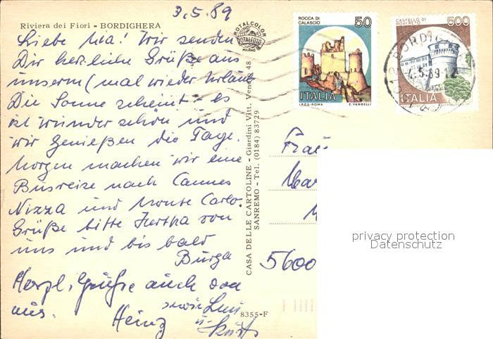 old postcard Bordighera Riviera dei Fiori Hafen Promenade Segelschiff Abendstimmung postalisch gelaufen Erhaltung siehe scans