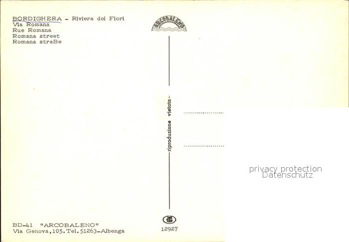 Bordighera Romana Strasse postalisch nicht gelaufen Erhaltung siehe scans