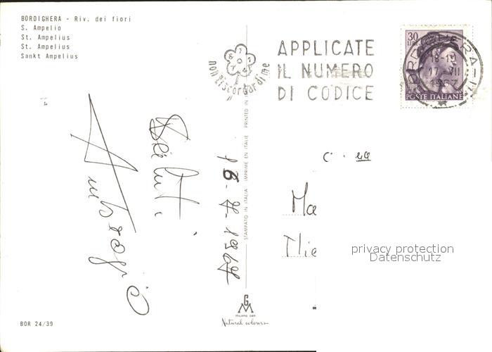 old postcard Bordighera San Ampelio Riviera dei Fiori postalisch gelaufen Erhaltung siehe scans