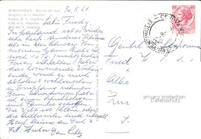 old postcard Bordighera Scogliera di San Ampelio Kueste Brandung postalisch gelaufen Erhaltung siehe scans
