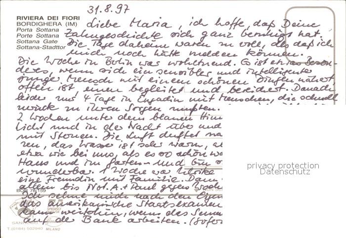 Bordighera Sottana-Stadttor postalisch nicht gelaufen Erhaltung siehe scans