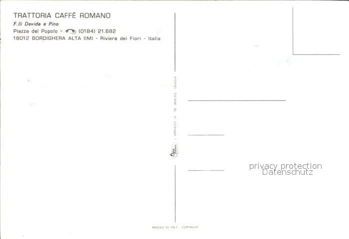Bordighera Trattoria Caffe Romano postalisch nicht gelaufen Erhaltung siehe scans