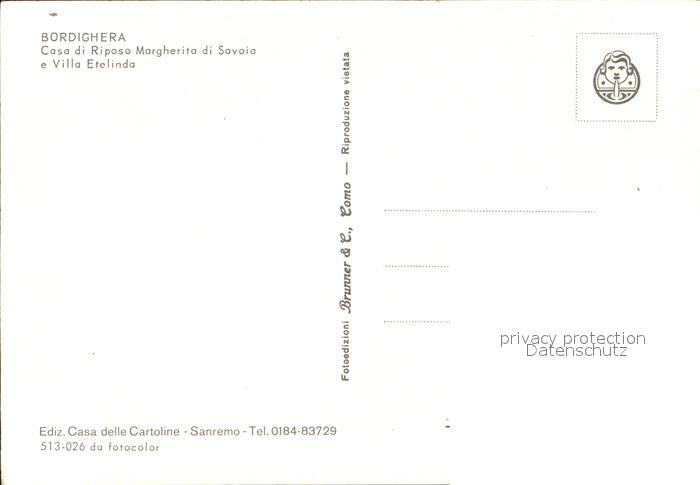 Bordighera Villa Margherita Villa Etelinda postalisch nicht gelaufen Erhaltung siehe scans