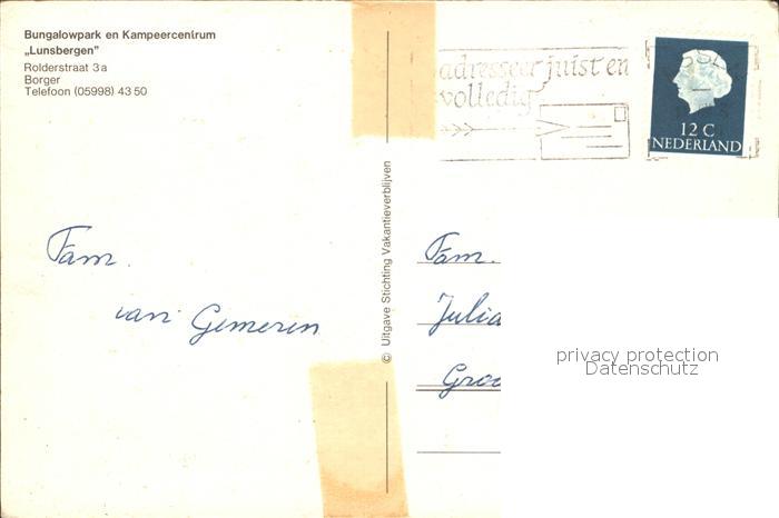 old postcard Borger Drenthe Bungalowpark Kampeercentrum Lunsbergen postalisch gelaufen Erhaltung siehe scans