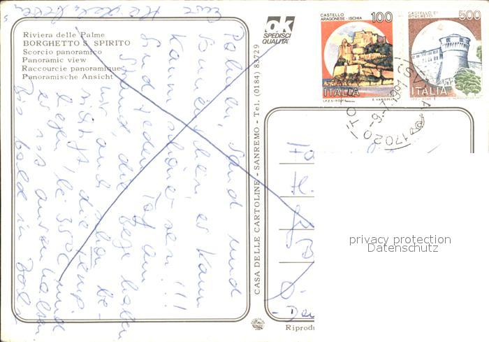 old postcard Borghetto Santo Spirito Liguria Panorama Riviera delle Palme postalisch gelaufen Erhaltung siehe scans