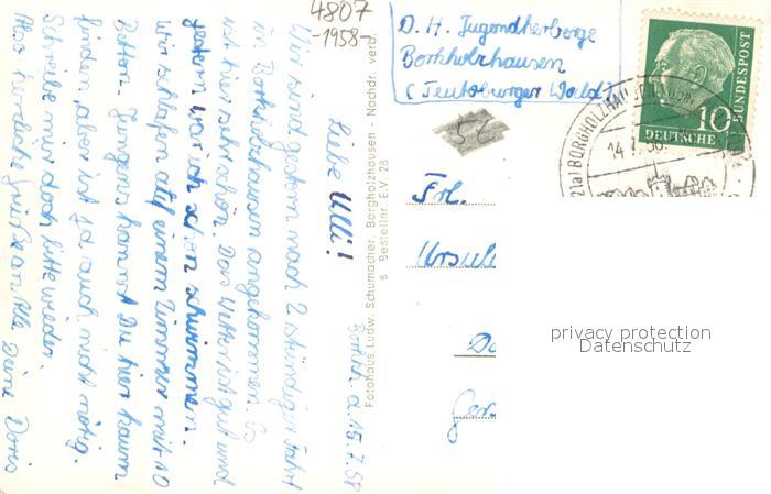 73750317 alte Postkarte Borgholzhausen Burg Aussichtsturm Schwanenteich Jugendherberge postalisch gelaufen Erhaltung siehe scans [WerneD78] KatCode: 11110005754004