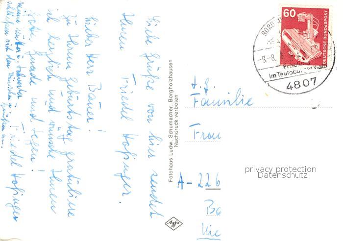73249692 alte Postkarte Borgholzhausen Evangelische Kirche Schloss Holtfeld Jugendheim postalisch gelaufen Erhaltung siehe scans [NatalD47] KatCode: 11110005754004