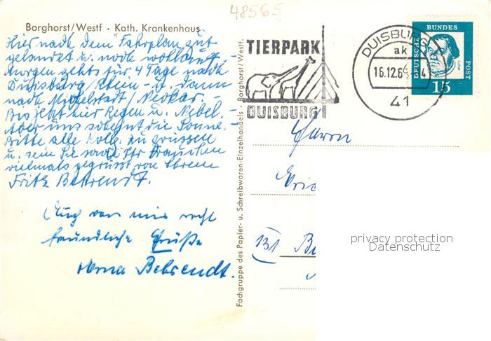 73857958 alte Postkarte Borghorst Westfalen Katholisches Krankenhaus postalisch gelaufen Fliegeraufnahme Erhaltung siehe scans [FriedD77] KatCode: 11110005566084