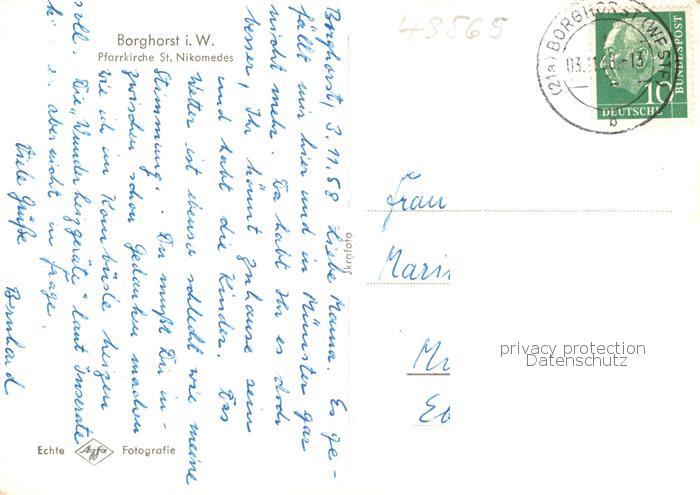 73864846 alte Postkarte Borghorst Westfalen Pfarrkirche St. Nikomedes Innenansicht postalisch gelaufen Erhaltung siehe scans [FriedD77] KatCode: 11110005566084