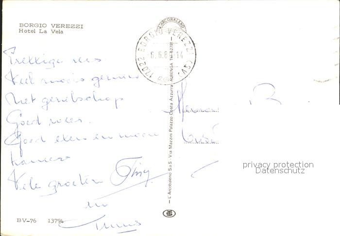 old postcard Borgio Verezzi Hotel La Vela postalisch gelaufen Erhaltung siehe scans