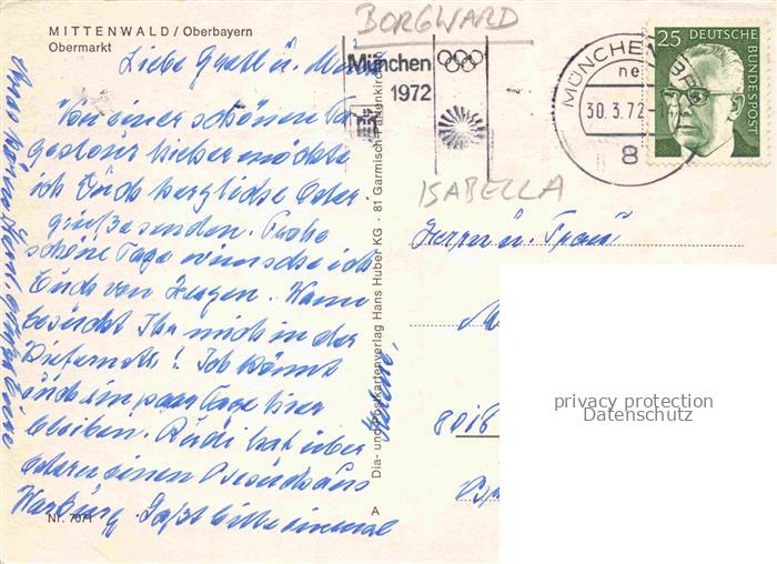 74086194 alte Postkarte BORGWARD Autos Cars Voitures Mittelwald Oberbayern Obermarkt postalisch gelaufen Erhaltung siehe scans [IrynaD87] KatCode: 22020000000300