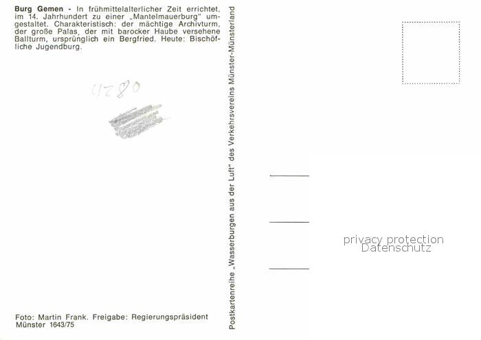 72888099 Borken Westfalen Fliegeraufnahme Burg Gemen postalisch nicht gelaufen Erhaltung siehe scans [AndreD76] KatCode: 11110005554012