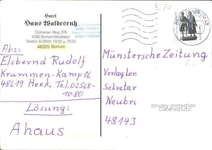 72369578 alte Postkarte Borken Westfalen Hotel Haus Waldesruh postalisch gelaufen Erhaltung siehe scans KatCode: 11110005554012