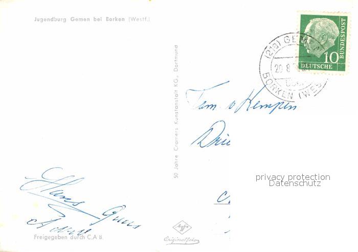 72694044 alte Postkarte Borken Westfalen Jugendburg Gemen Fliegeraufnahme postalisch gelaufen Erhaltung siehe scans [FriedD77] KatCode: 11110005554012