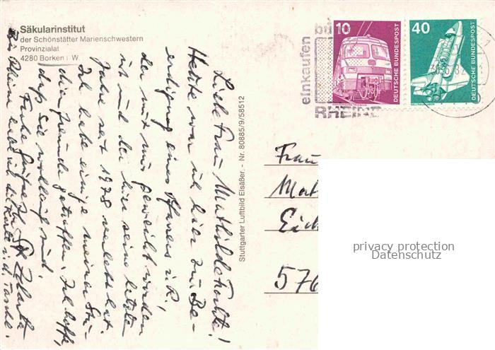 74110281 alte Postkarte Borken Westfalen NRW Saekularinstitut der Schoenstaetter Marienschwestern Provinzilat Fliegeraufnahme postalisch gelaufen Erhaltung siehe scans [WerneD78] KatCode: 11110005554012