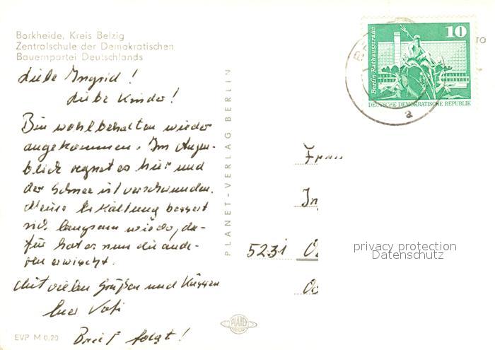 73036435 alte Postkarte Borkheide Zentralschule Demokratische Bauernpartei postalisch gelaufen Erhaltung siehe scans [KathaD81] KatCode: 11110012069052