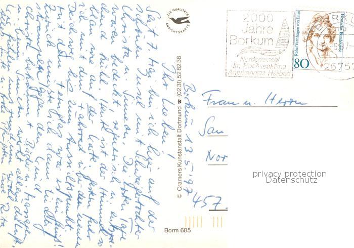 73159413 alte Postkarte Borkum Ansicht vom Meer aus Strand Kurhaus Leuchtturm Kinderspielhaus Promenade postalisch gelaufen Erhaltung siehe scans [FriedD77] KatCode: 11110003457002