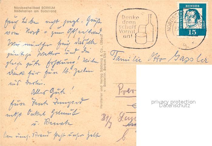 73294263 alte Postkarte Borkum Badehallen am Suedstrand Promenade postalisch gelaufen Erhaltung siehe scans [FriedD77] KatCode: 11110003457002
