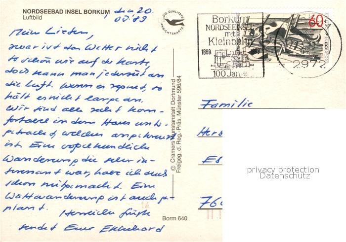 73319880 alte Postkarte Borkum Fliegeraufnahme postalisch gelaufen Erhaltung siehe scans [FriedD77] KatCode: 11110003457002