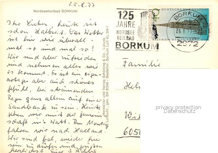 73248099 alte Postkarte Borkum Fliegeraufnahme postalisch gelaufen Erhaltung siehe scans [FriedD77] KatCode: 11110003457002