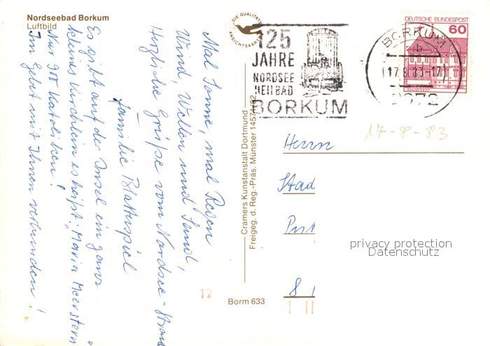 73149005 alte Postkarte Borkum Fliegeraufnahme postalisch gelaufen Erhaltung siehe scans [FriedD77] KatCode: 11110003457002