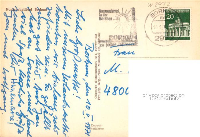 73121307 alte Postkarte Borkum Fliegeraufnahme postalisch gelaufen Erhaltung siehe scans [KathaD81] KatCode: 11110003457002